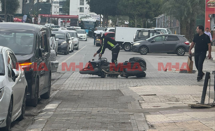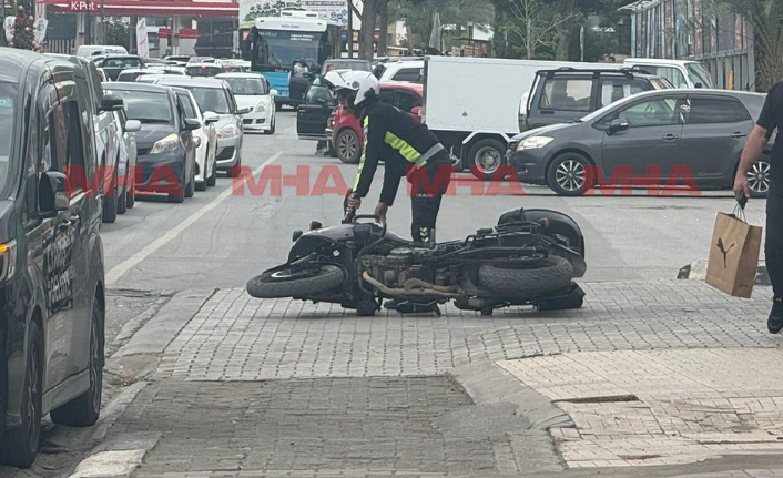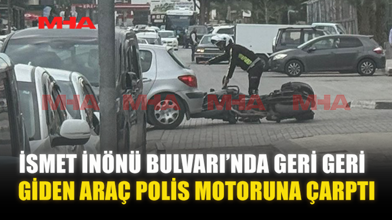 Macro Süpermarket’ten çıkış yapan bir araç, ters yöne girdikten sonra geri geri manevra yaparken arkasında duran polis motoruna çarptı.
