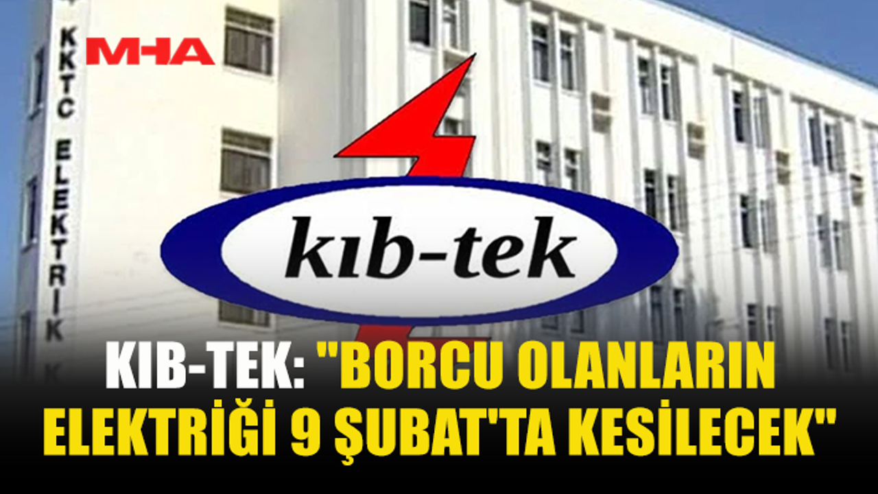 Kıbrıs Türk Elektrik Kurumu (KIB-TEK), 675 TL ve üzeri borcu olanların elektriklerinin 9 Şubat Pazartesi günü kesileceğini duyurdu.