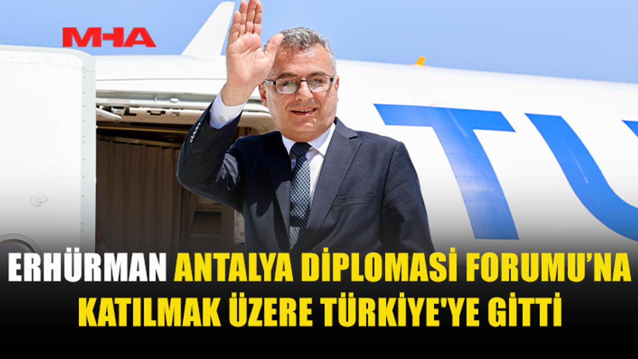 Cumhurbaşkanlığı’ndan yapılan açıklamaya göre Erhürman, bu yıl beşincisi düzenlenecek Antalya Diplomasi Forumu’na katılmak üzere eşi Nilden Bektaş Erhürman ve beraberindeki heyetle birlikte bugün saat 12.30'da Ercan Havaalanı'ndan ayrıldı.