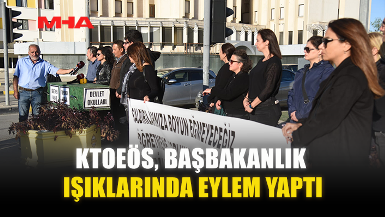 Kıbrıs Türk Orta Eğitim Öğretmenler Sendikası (KTOEÖS), Başbakanlık ışıklarında eylem yaptı ve hükümeti istifaya çağırdı.