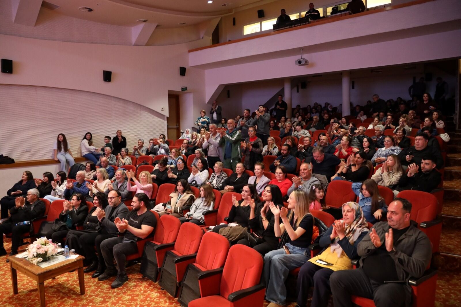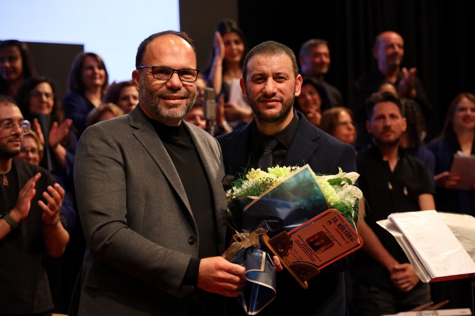 İskele Belediye Başkanı Hasan Sadıkoğlu da konser bitiminde sahneye çıkarak İskele Belediye Korosunu tebrik etti ve koro şefi Ziya Başkal’a çiçek taktim etti.