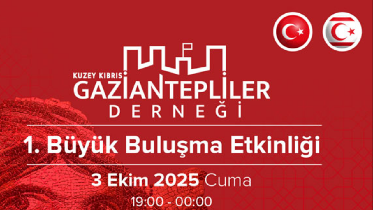Kuzey Kıbrıs Gaziantepliler Derneği’nden yapılan açıklamaya göre, Dernek kuruluşunun ilk yıldönümünde 1. Büyük Buluşma Etkinliği düzenleniyor.