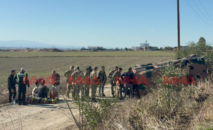 Lefkoşa–Gazimağusa ana yolunda meydana gelen kazada, askeri bir araç henüz belirlenemeyen bir nedenle devrildi. Kazada araçta bulunan 10 askerin hafif şekilde yaralandı.