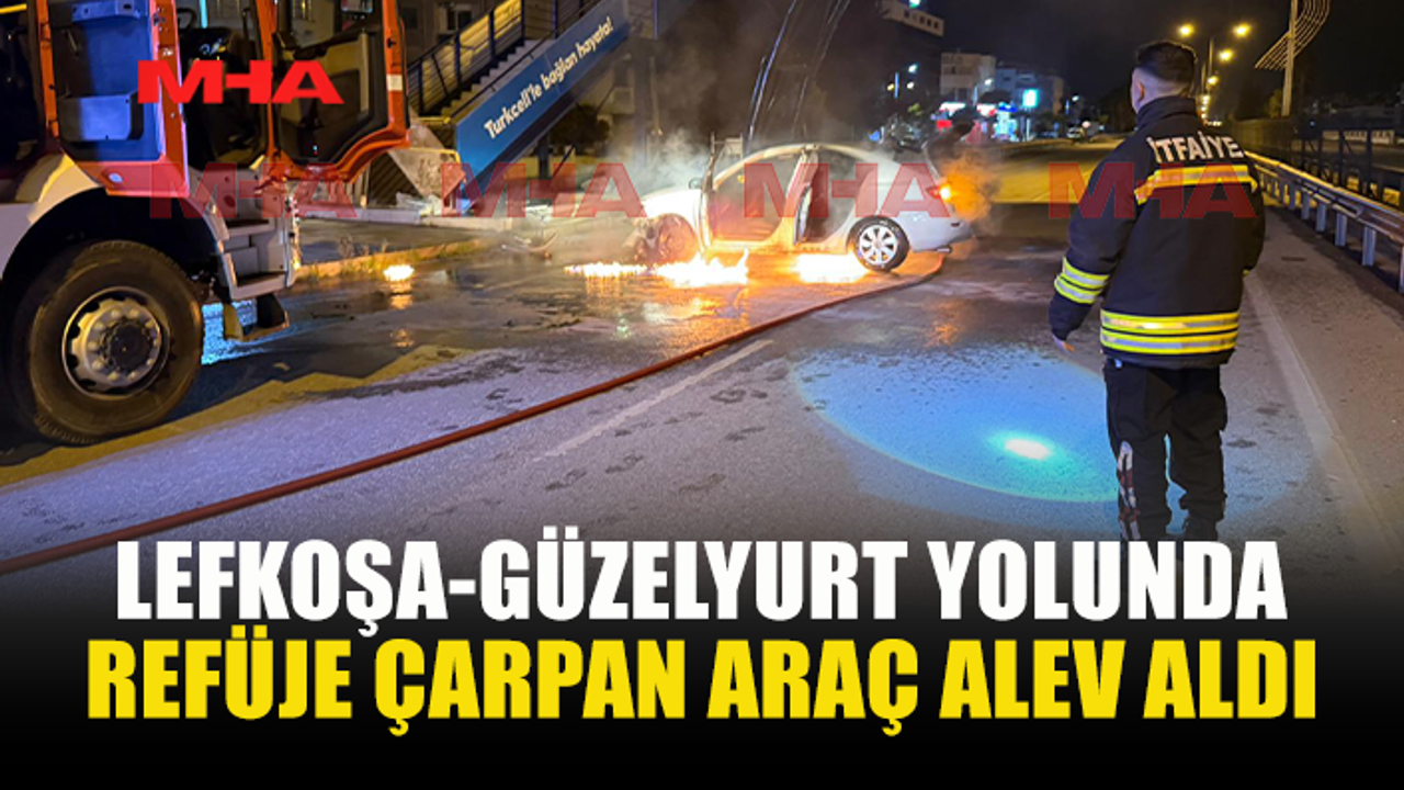 05.04.2026 tarihinde, saat 05.30 sıralarında, Lefkoşa - Güzelyurt Anayolu’nun 1’inci kilometresi üzerinde, yönetimindeki KD 447 plakalı salon araç ile batı istikametine doğru seyreden kimliği meçhul araç sürücüsü Turkcell yaya üst geçidi önlerine geldiğinde dikkatsizliği sonucu direksiyon hakimiyetini kaybederek yolun solunda bulunan demir refüje çarpıp kontrolsüz bir şekilde yol içerisinde savrulmuştur. Kaza sonucu, muhtemelen sızan benzinin sıcak aksamlara temas etmesi neticesinde alev alan araç, olay yerine intikal eden itfaiye ekipleri tarafından söndürülmüştür. Kaza ve yangın sonrası araçta maddi hasar meydana gelirken, araç sürücüsü isim ve adres bırakmadan olay yerinden ayrıldığından dolayı araç sürücüsü henüz tespit edilememiştir. Soruşturma devam etmektedir.