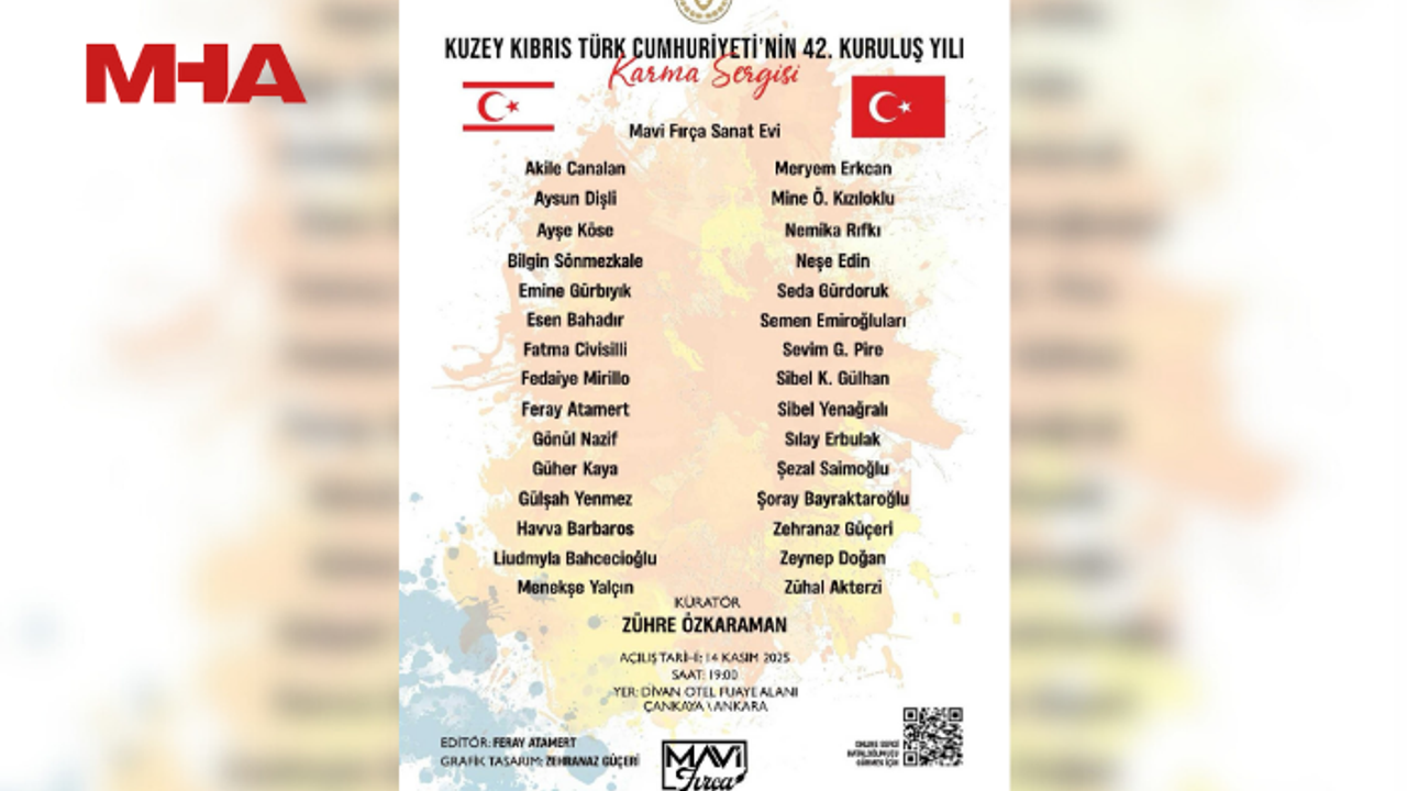 Kuzey Kıbrıs Türk Cumhuriyeti’nin Kuruluşunun 42. Yılında KKTC Ankara Büyükelçiliğinin daveti ile gerçekleşecek karma resim sergsi, 14 Kasım’da Divan Otel Fuaye Alanı’nda düzenlenecek resepsiyonla sanatseverlerle buluşacak. Sergi, birçok ülkenin büyükelçileri ve elçilik çalışanları tarafından gezilecek.