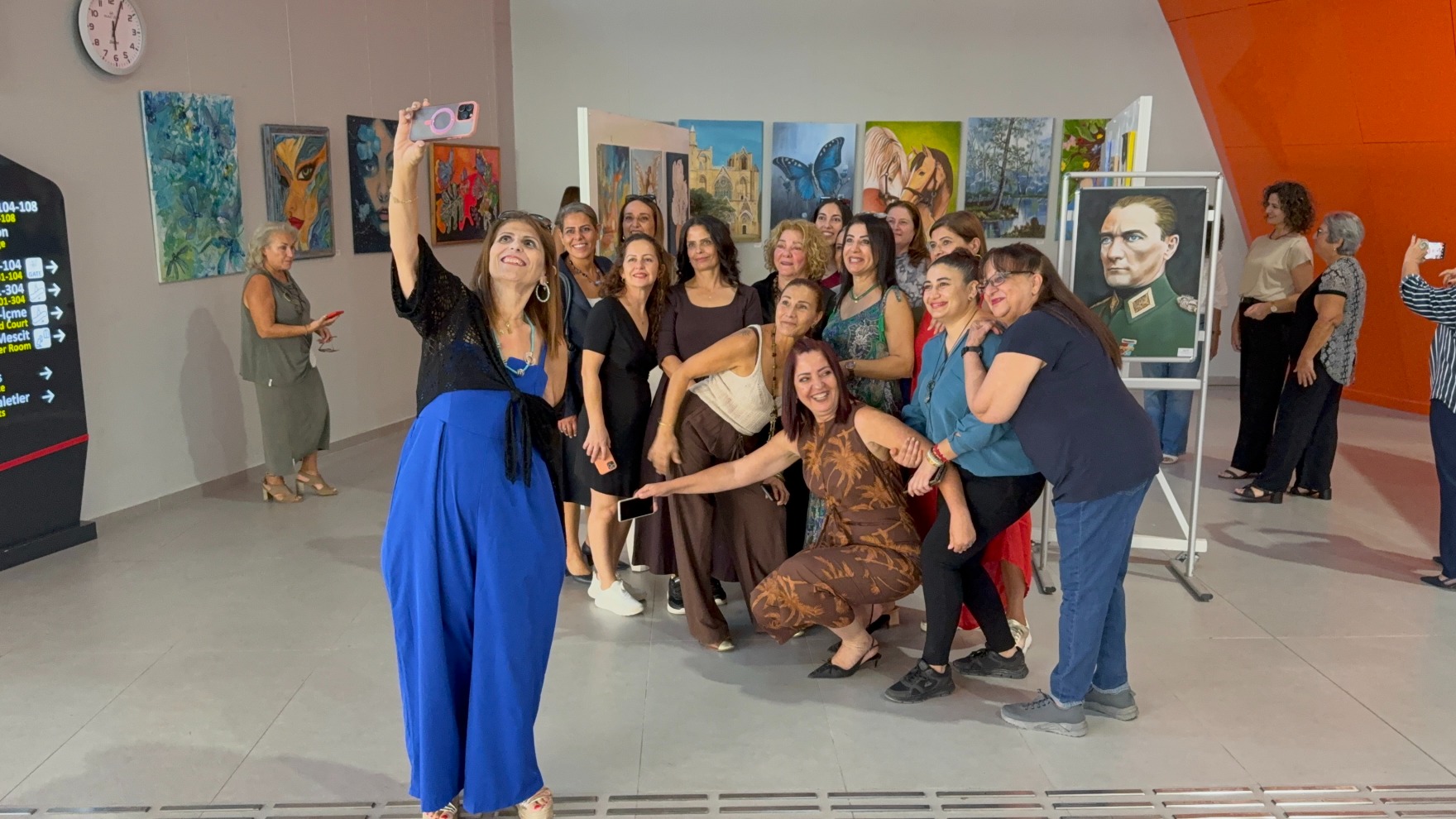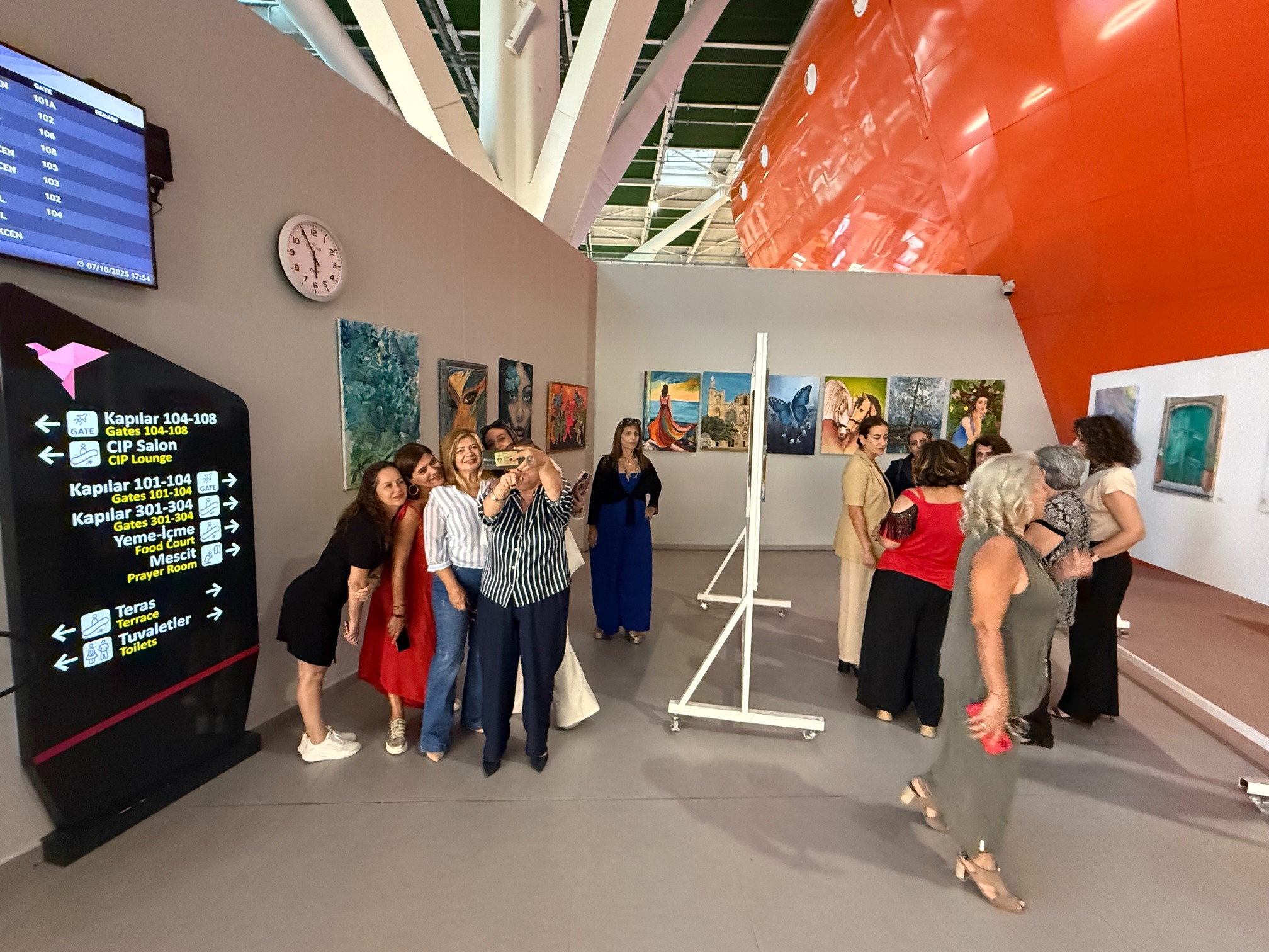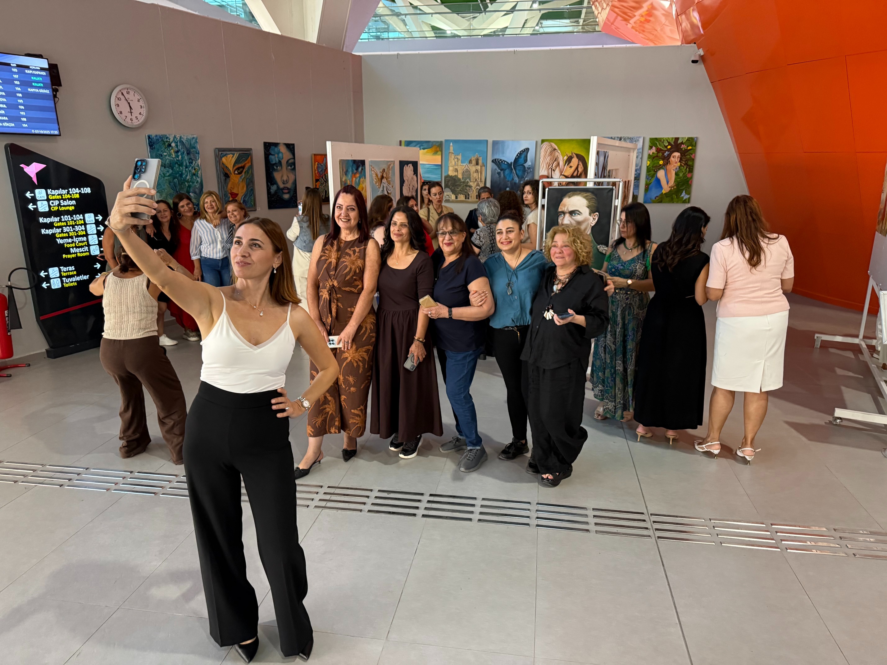 Sergide eseri olan kadınlar, Ercan Havalimanı’nda sergilenen eserlerini ziyaret ederek, telefonlarıyla önlerinde fotoğraf ve videolar çekip sosyal medyada paylaşmanın mutluluğunu yaşadı. Kadınlar, son olarak sergi önünde toplu fotoğraf çekerek, kendilerine bu imkânı veren T&T Havalimanı İşletmeciliğine teşekkür etti.