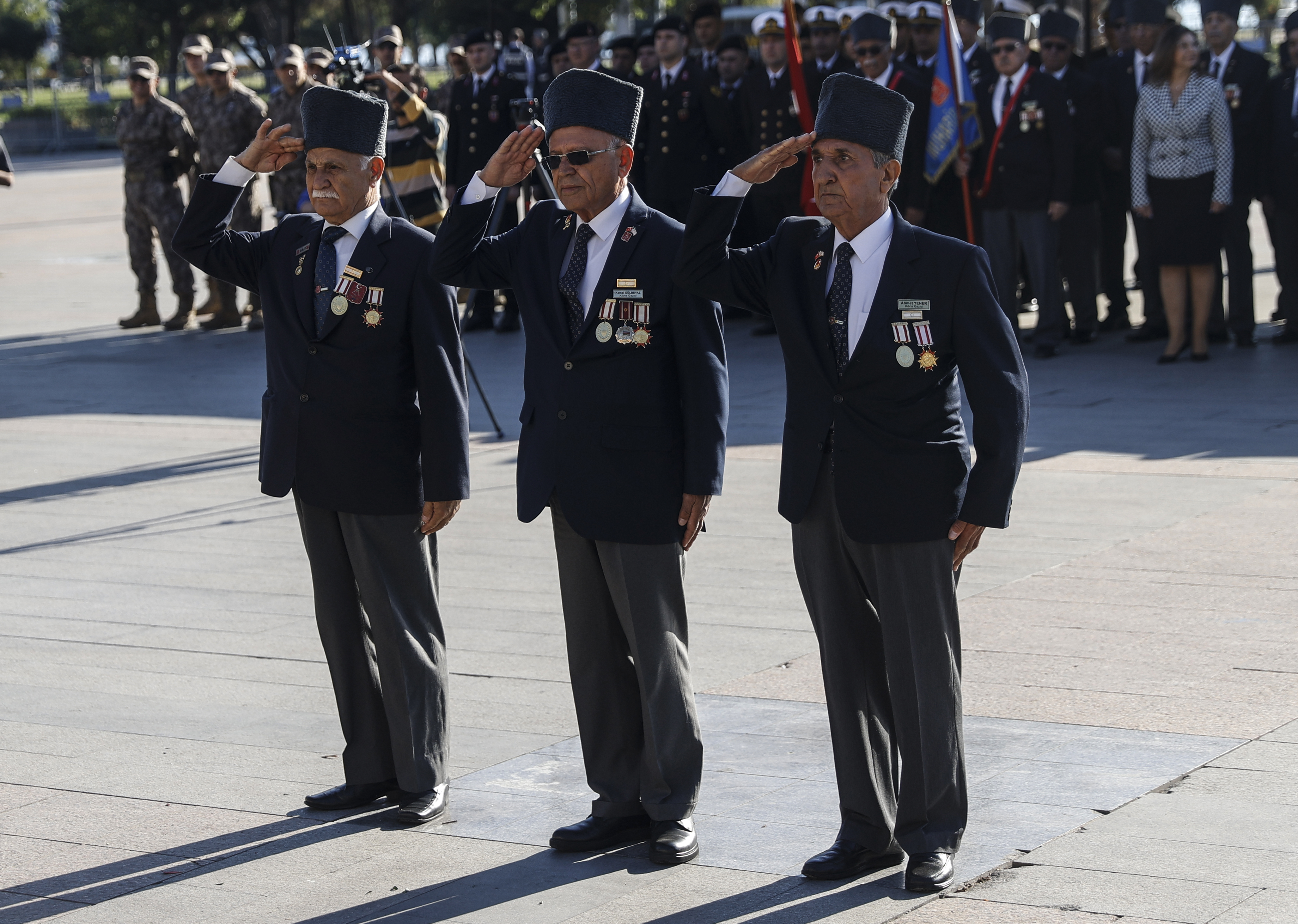 Kıbrıs gazilerinin de katılımıyla Cumhuriyet Alanı'nda düzenlenen törende, KKTC Mersin Başkonsolosu Erek Çağatay ve sivil toplum kuruluşlarının temsilcileri Atatürk Anıtı'na çelenk sundu.