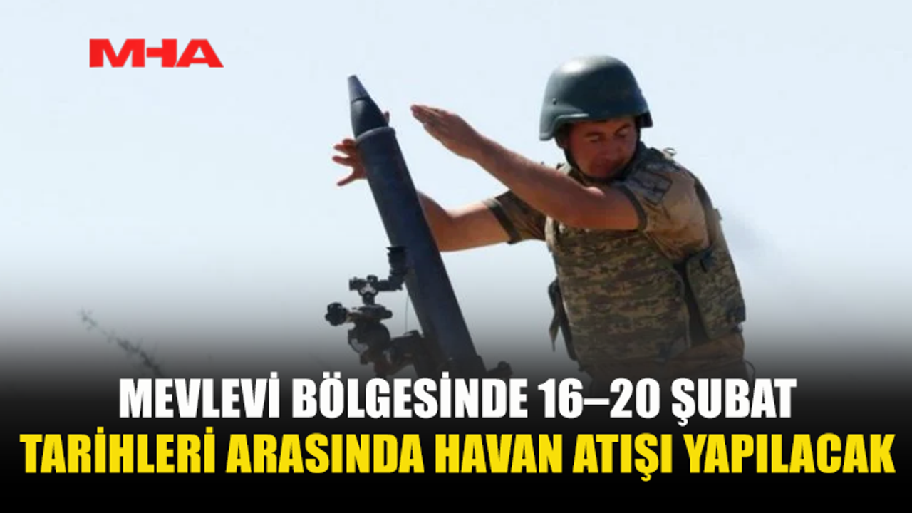 Güzelyurt Kaymakamlığı, 16–20 Şubat tarihleri arasında Mevlevi bölgesinde havan atışları gerçekleştirileceğini duyurdu.