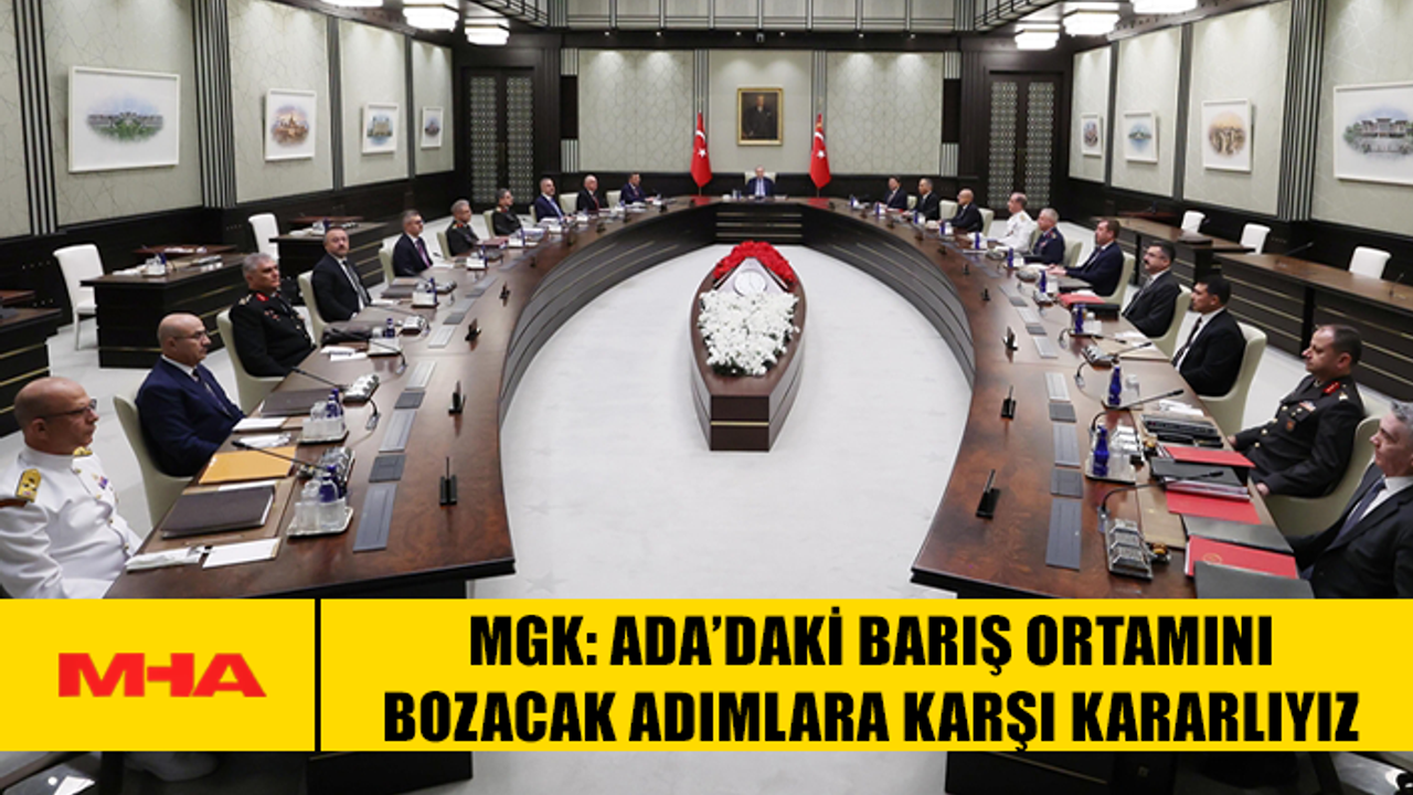 Milli Güvenlik Kurulu (MGK) bildirisinde “ülkemizin Ada'daki barış ortamını menfi etkileyebilecek her türlü adıma karşı kararlı duruşunu muhafaza edeceği kaydedilmiştir” denildi.