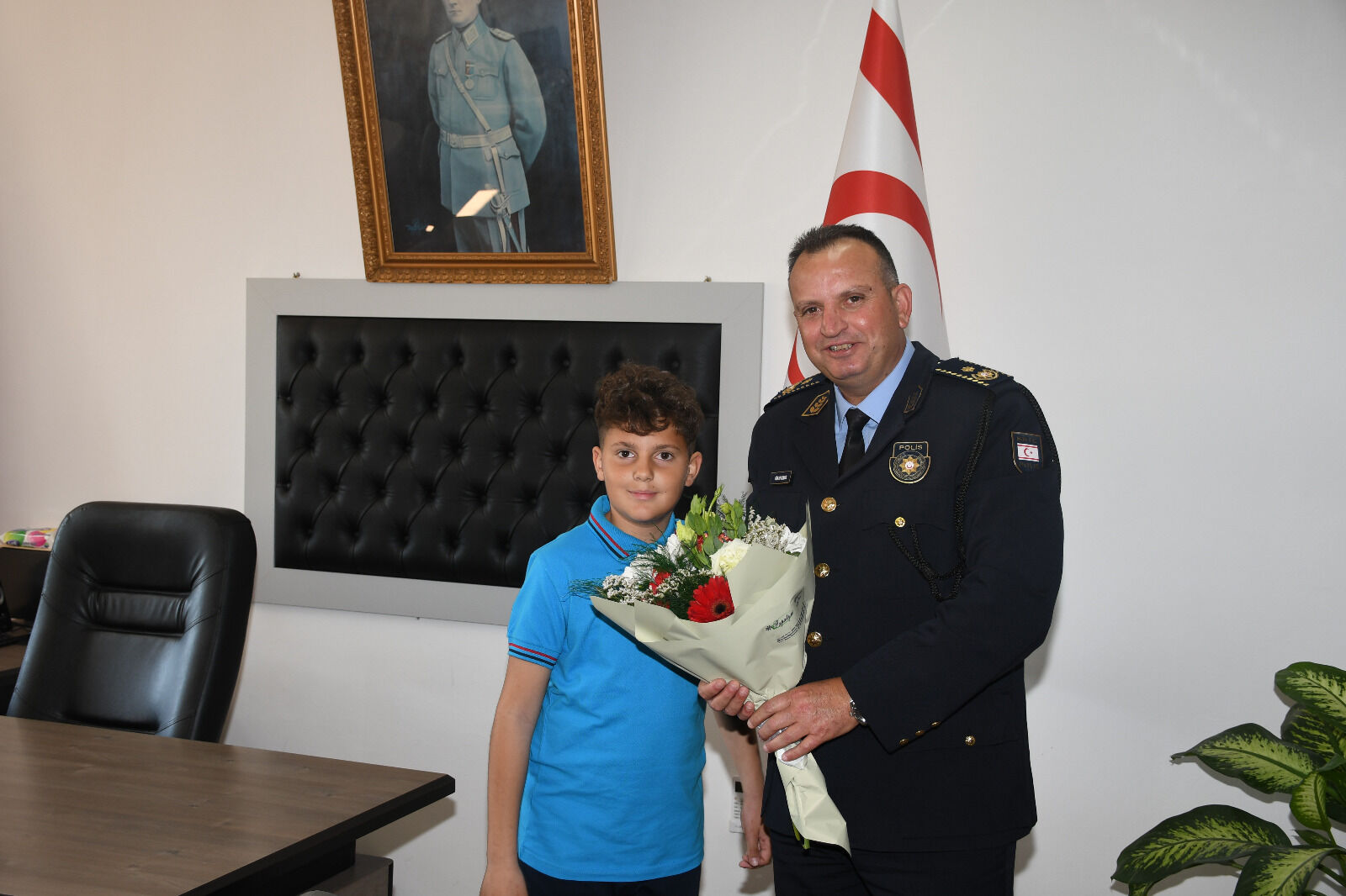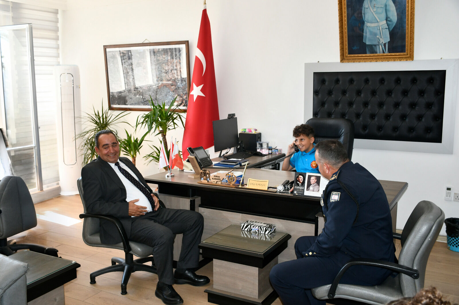 23 Nisan Ulusal Egemenlik ve Çocuk Bayramı etkinlikleri kapsamında, Dr. Suat Günsel Devlet İlkokulu Müdürü Selim ÖZMENEK başkanlığında, aynı okuldan oluşan öğrenci heyeti Polis Genel Müdür Vekili Gökay KARAGİL’i makamında ziyaret etti.