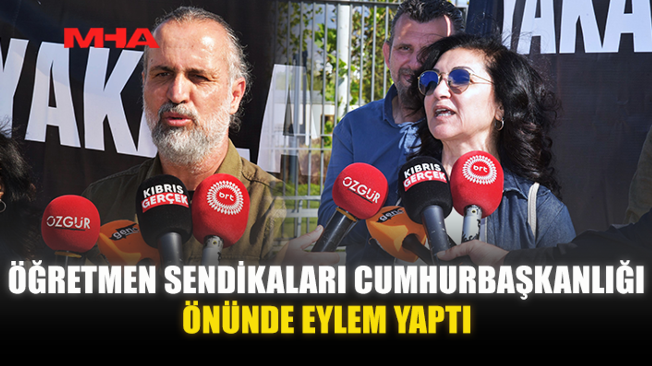 Kıbrıs Türk Öğretmenler Sendikası (KTÖS) ile Kıbrıs Türk Orta Eğitim Öğretmenler Sendikası (KTOEÖS), Cumhurbaşkanlığı önünde eylem yaptı.