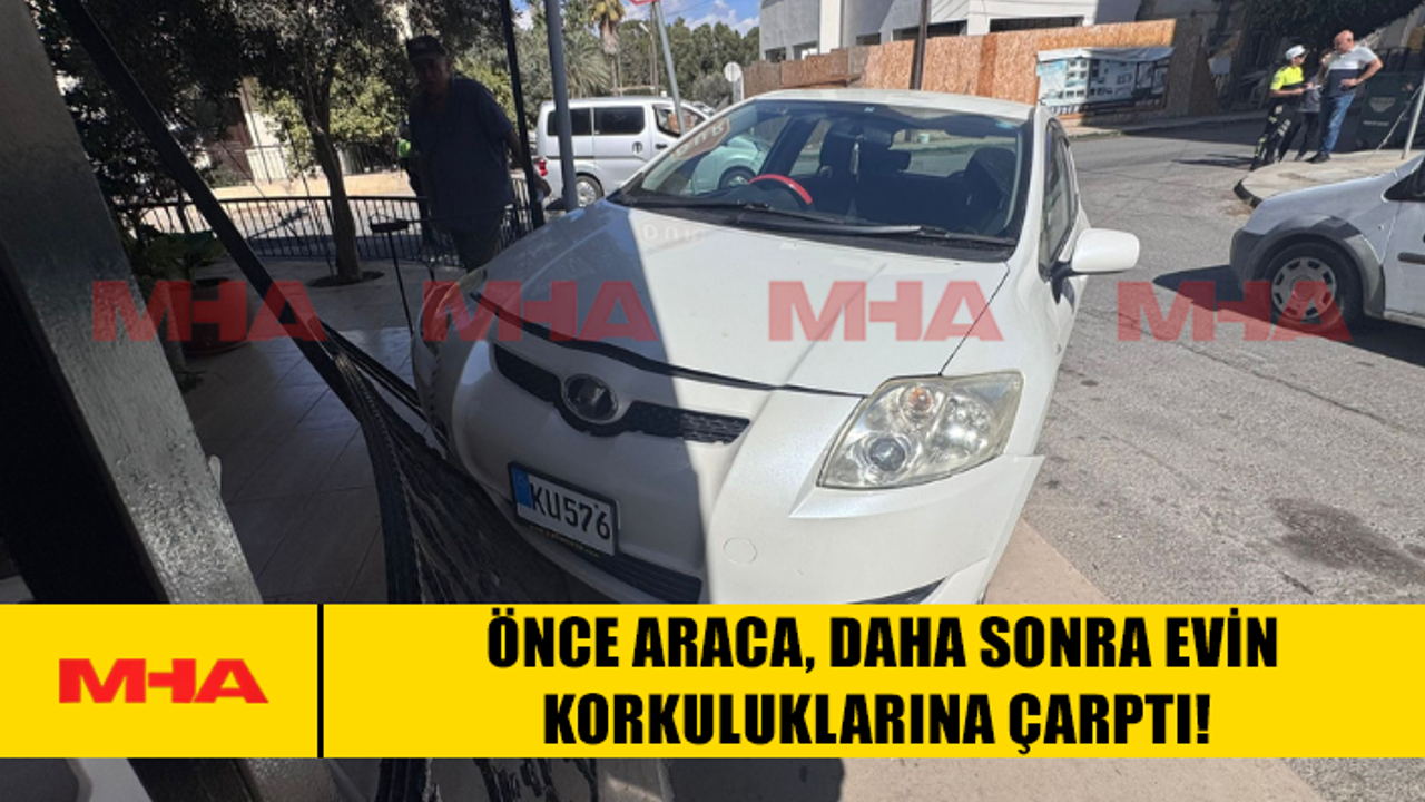 Gazimağusa Sakarya bölgesinde Talat Cafer Sokak'ta meydana gelen trafik kazasında, bir araç önce başka bir araca çarpıp daha sonra bir evin korkuluklarına çarparak durabildi.