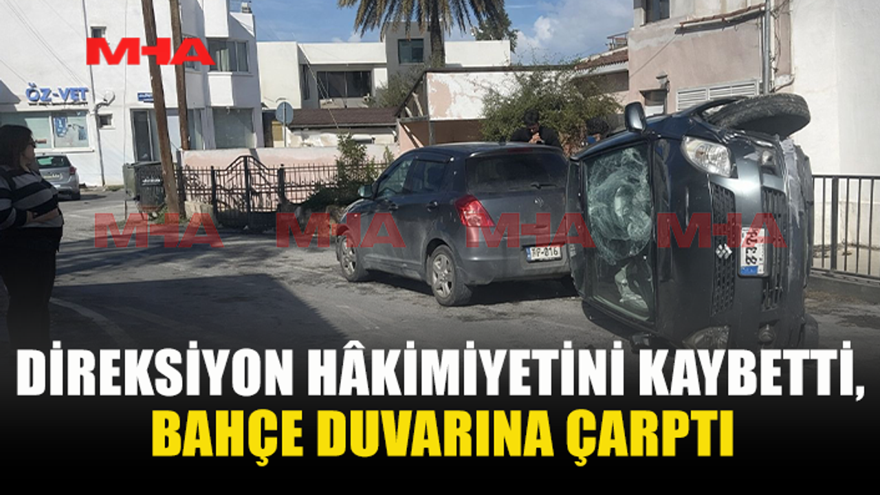 MF 494 plakalı aracın sürücüsü, direksiyon hâkimiyetini kaybederek bir evin bahçe duvarına çarptı. Çarpmanın etkisiyle araç yan yattı.
