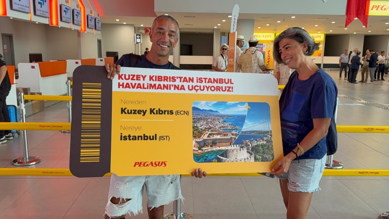 Ercan Havalimanı giden yolcu bölümünde Pegasus bilet satış ofisi önünde gerçekleşen etkinlikte, yolculara ilk uçuş olmasından dolayı “Uçuş sertifikası”; hatıra fotoğrafı olarak çerçeve üzerinde “Pegasus ilk Kuzey Kıbrıs İstanbul Havalimanı uçuşunda ben de varım” yazısı ile üzerindeki kartta “Her yeni yolculuk bir hikaye… Pegasus’un ECN-İST hattını sizinle birlikte açıyoruz. İyi uçuşlar dileriz” yazılı güller hediye edildi.