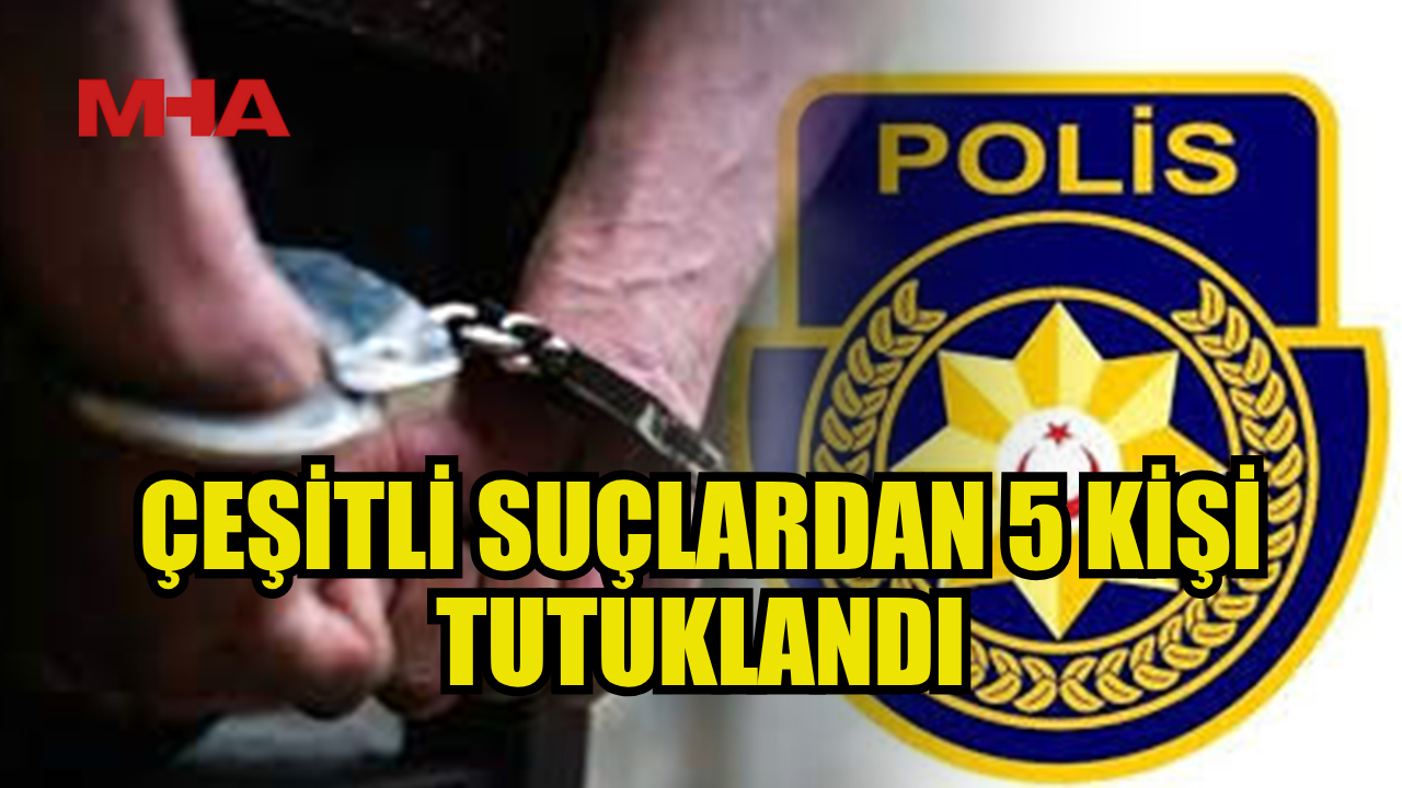 Ülke genelinde polis ekipleri tarafından yürütülen denetim ve soruşturmalar sonucunda, çeşitli suçlarla ilgili 5 kişi tutuklandı.