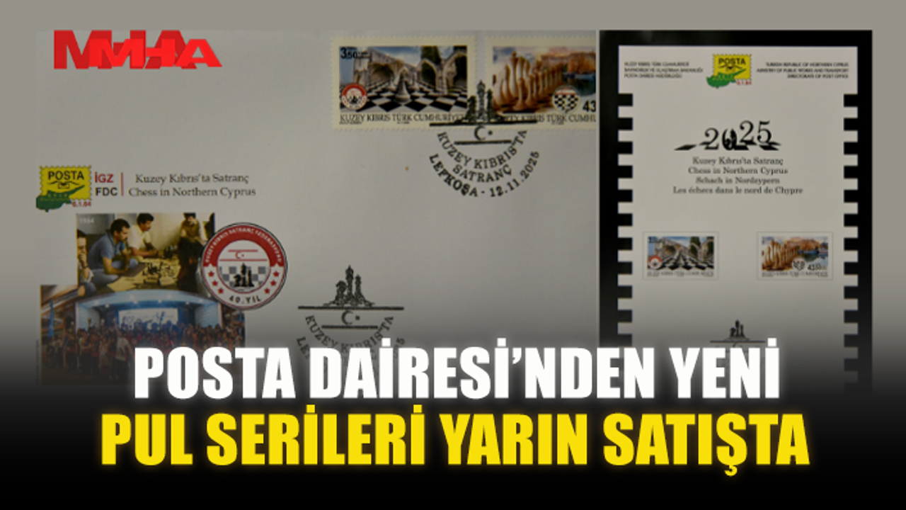 Posta Dairesi Müdürlüğü’nün “Kuzey Kıbrıs’ta Satranç” ve “Karikatür Sanatçılarımızın Eserleri” konulu pul serileri ile ilk gün zarfları yarın satışa sunuluyor.