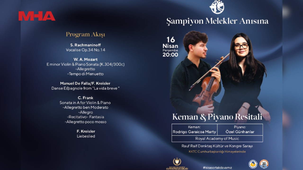 Şampiyon Melekler anısına keman ve piyano resitali düzenleniyor.