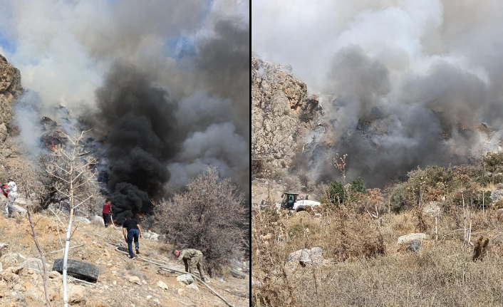 Yangına; 5 itfaiye, 1 yangına müdahale aracı, 1 komuta kontrol aracı, 1 dozer, 1 loader, 4 su tankeri, 1 dron ile 1 helikopter olmak üzere toplam 14 muhtelif cinste araç ve 36 personel ile müdahale edilmiştir.