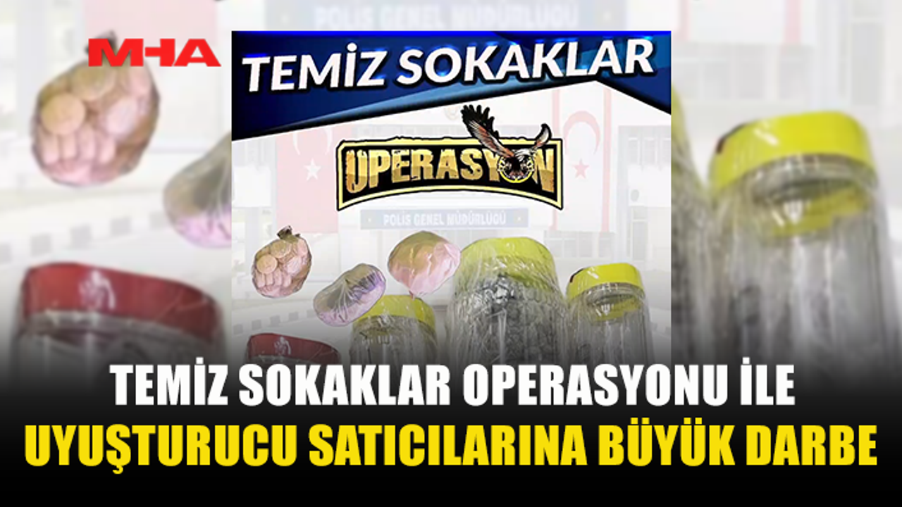 Narkotik ve Kaçakçığı Önleme Müdürlüğü ile Polis Ekiplerince, Gazimağusa, Girne ve İskele İlçeleri’nde koordineli şekilde dün gerçekleştirilen “Temiz Sokaklar Operasyonu” kapsamında yapılan ev, araç ve şahıs üst aramaları sonucunda; satışa hazır paketler halinde toplam 236 gram ağırlığında hintkeneviri türü, 22 gram ağırlığında metamfetamin türü ile 50 miligram ağırlığında kokain türü uyuşturucu madde, sentetik cannabinoid türü uyuşturucu madde içeren 10 adet kağıt, MDMA (extasy) türü uyuşturucu madde içeren toplam 67 adet hap, tütünle karışık uyuşturucu madde içeren 5 adet sarma sigara ile üzerlerinde uyuşturucu madde kalıntısı olan 3 adet hassas terazi, 2 adet öğütücü ve cam pipo ele geçirildi.