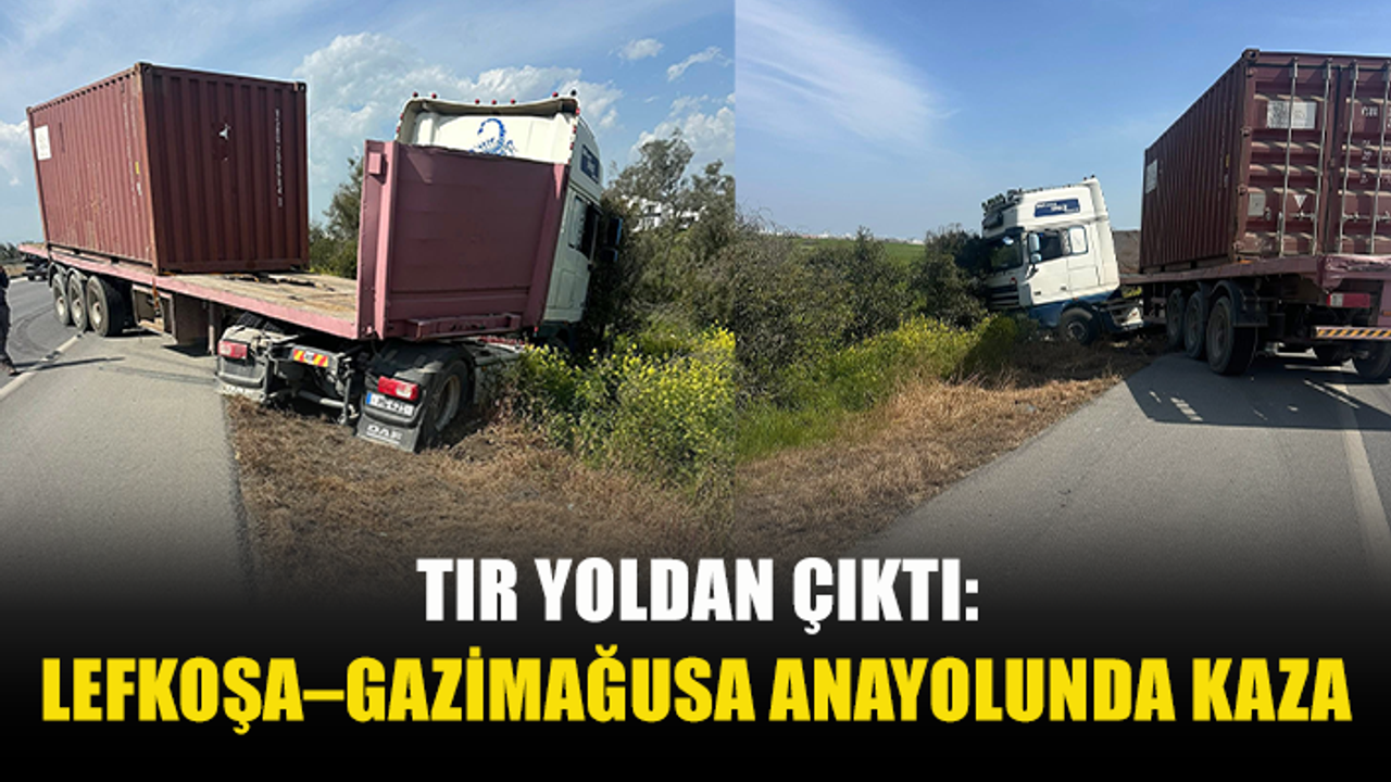 Lefkoşa–Gazimağusa anayolunda meydana gelen kazada bir tır sürücüsü direksiyon hakimiyetini kaybederek yoldan çıktı. Olayla ilgili detayların gelmesi bekleniyor.