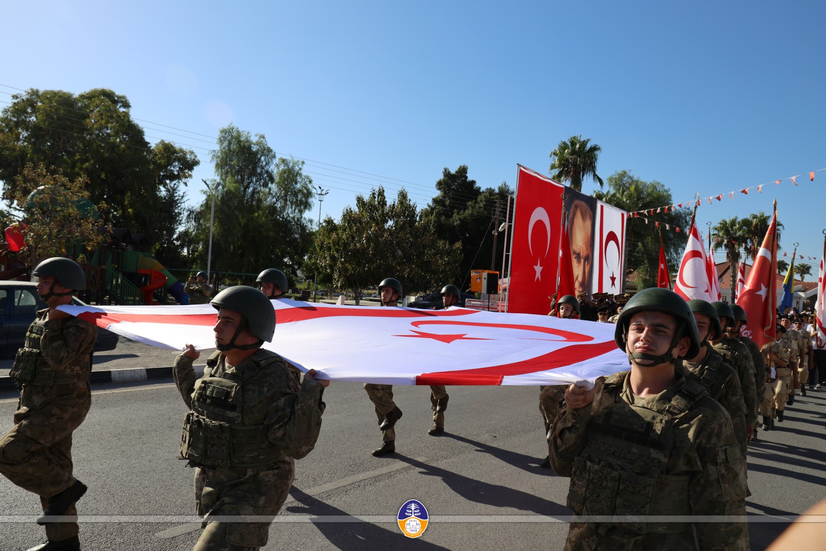 Ulu Önder Mustafa Kemal Atatürk’ün Türk halkına miras bıraktığı, tarihe altın harflerle geçen Cumhuriyet, 102 yaşında. Türkiye Cumhuriyeti’nin kuruluşunun, tüm dünyaya ilan edildiği gün olan 29 Ekim 1923’ün 102. yıldönümü KKTC genelinde törenlerle kutlandı. 7’den 70’e çok sayıda kişinin katıldığı İskele’deki törenlerde gurur ve coşku hakimdi. Törenlere İskele Kaymakamı Ertuğrul Toroslu, İskele Belediyesi Asbaşkanı Halil Dericioğlu, GKK adına 4. Piyade Alay Komutanı Kurmay Albay Mahmut Gergin, KTBK adına Topçu Albay Anıl Yıldız, Sivil Savunma Teşkilat Başkanlığı İskele Bölge Müdürü, okullar ile kurum ve kuruluş temsilcileri ve halk katıldı.