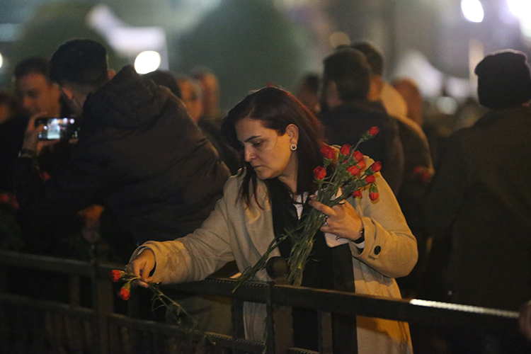 Kalabalık, daha sonra ilk depremin meydana geldiği saat olan 04.17'de ellerindeki karanfilleri Saat Kulesi'ne bıraktı.