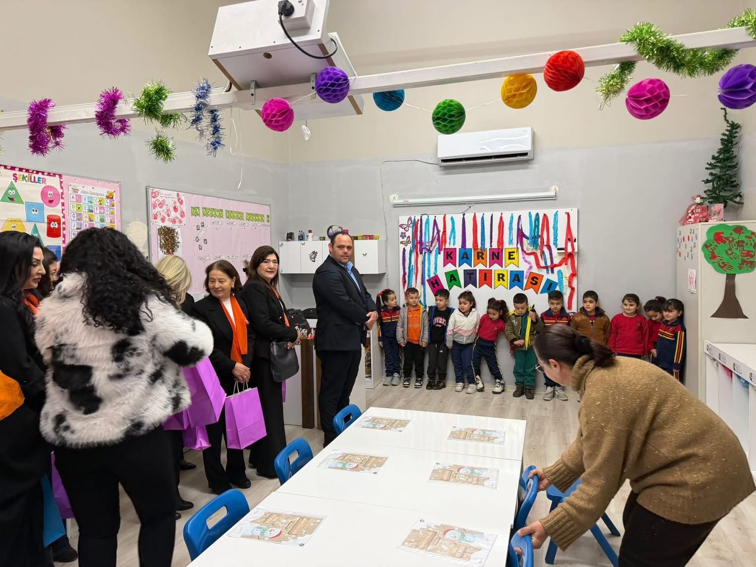 Ulusal Birlik Partisi (UBP) Lefkoşa İlçesi ve Kadın Kolları heyeti, bugün sabah saatlerinde Yenicami Okul Öncesi Eğitim Merkezi’ni ziyaret ederek öğrencilere karne hediyeleri dağıttı.