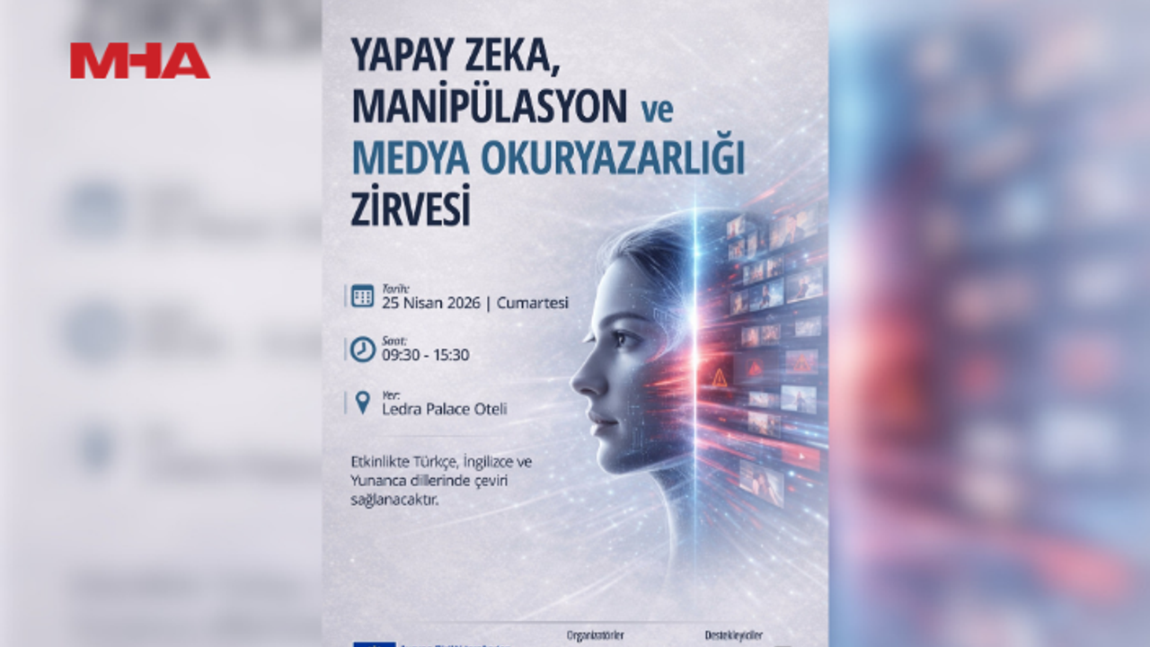 Kıbrıs Türk Gazeteciler Birliği ile İnsan Hakları Platformu’nun organizatörlüğünde; Kıbrıs Gazeteciler Sendikası, Fact-Check Cyprus (Cyprus University of Technology) ve Barış İçin Araştırma ve İletişim Merkezi’nin (Doğu Akdeniz Üniversitesi) katkısıyla düzenlenen Yapay Zeka, Manipülasyon ve Medya Okuryazarlığı Zirvesi, Avrupa Birliği finansmanıyla 25 Nisan Cumartesi günü ara bölgedeki Ledra Palace Otel’de gerçekleştirilecek.