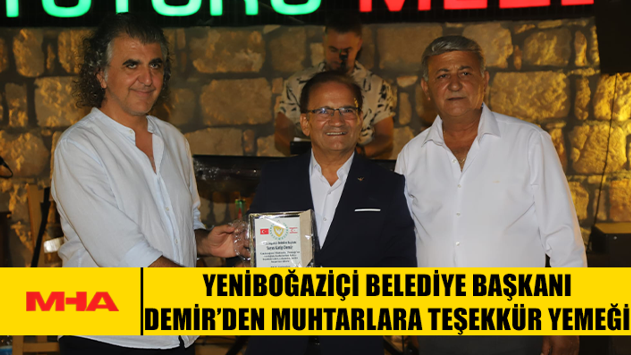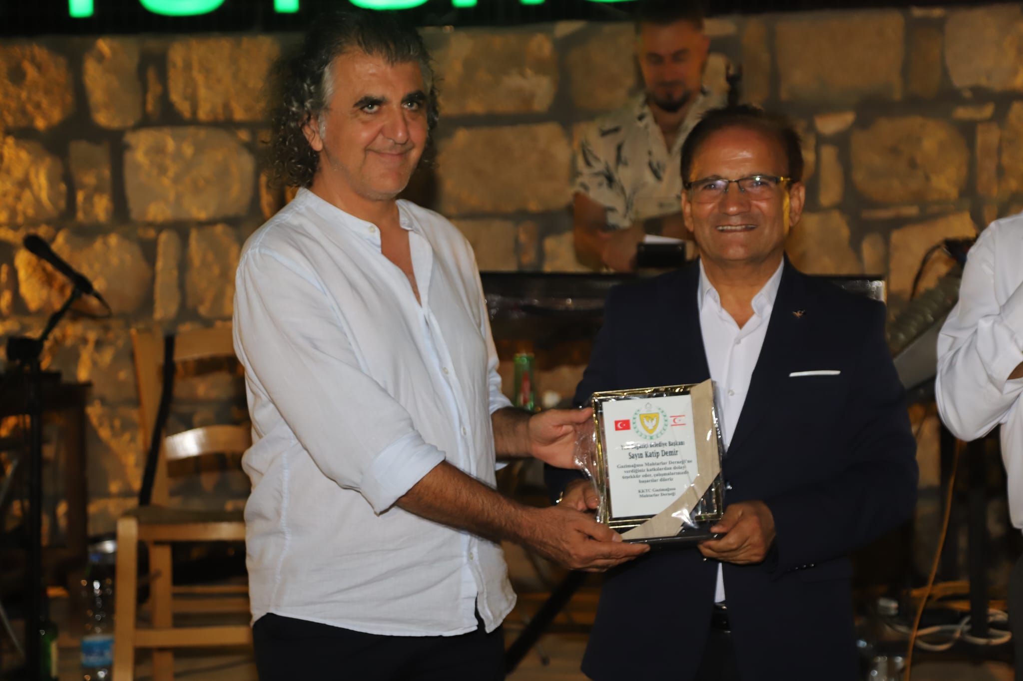 Mağusa Muhtarlar Derneği olarak bu geceyi düzenleyip, Yeni Boğaziçi Belediye Başkanı Katip Demir’i davet ettik. Kendisi de davetimizi kabul etti ve bu anlamlı geceyi gerçekleştirdi. Kendisine teşekkür ediyor ve gecenin anısına bu plaketi takdim ediyoruz” ifadelerini kullandı.