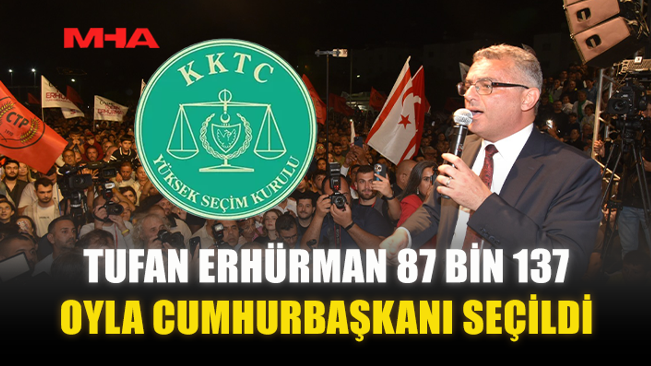 Cumhurbaşkanı seçilen CTP adayı Tufan Erhürman 87 bin 137 (yüzde 62,76), Ersin Tatar 49 bin 650 (yüzde 35,76) oy aldı.
