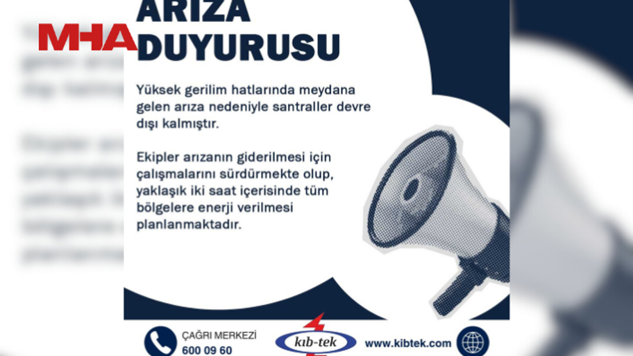 KIB-TEK açıklamasında, “Yüksek gerilim hatlarında meydana gelen arıza nedeniyle bazı santrallerimiz geçici olarak devre dışı kalmıştır. Ekiplerimiz arızanın giderilmesi için çalışmalarını sürdürmekte olup, yaklaşık iki saat içerisinde tüm bölgelere enerji verilmesi planlanmaktadır” ifadelerine yer verildi.